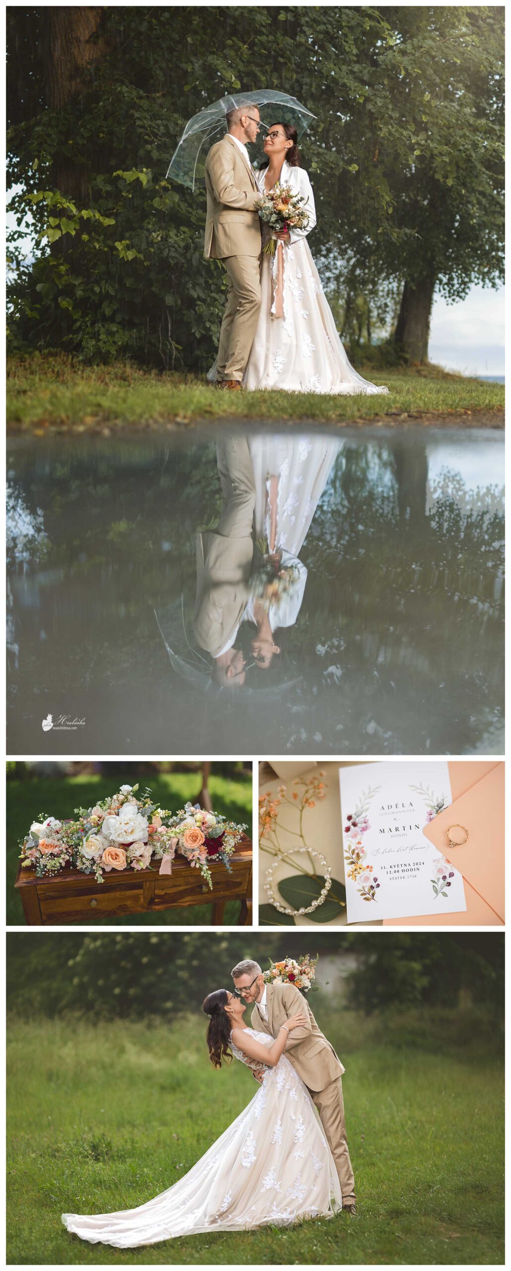 Krásná svatba, kde svatebnímu páru pršelo hodně štěstí 😊. Zajímavým detailem bylo zvolení pastelových barev a k tomu bordó barva a vypadalo to moc hezky, jak můžete posoudit sami. Pro mě tato svatba byla hodně výjimečná, protože nevěstou byla moje sestřenice, takže zde bylo i hodně příbuzenstva🙂, zaručené tedy bylo dojímání každou chvilku. Dobré na tom bylo, že jsem věděla jaký tam bude jeden svatební dar a už dopředu jsem věděla, že ho musím využít na focení a je to bomba😍(fotka nahoře). Statek 1738 byl moc hezké a příjemné místo. Adele Floweroom zajistilo krásné květiny a Dj/bavič – Jan Witek, který dostává za mě pochvalu, protože opravdu úžasně udržoval zábavu až do rána. To vše k nádhernému svatebnímu páru a krásné atmosféře, kterou dodali svatebčani vytvořilo skvělý den. Svatebnímu páru přeji ať máte před sebou jen a jen šťastné roky… když už vám tolik štěstí napršelo. A taková malá vsuvka pro budoucí nevěsty – deště se nebojte naopak – dá se využít pro krásné fotky ❤️.