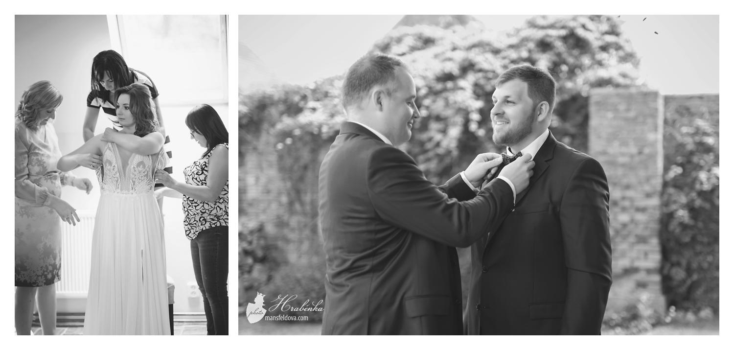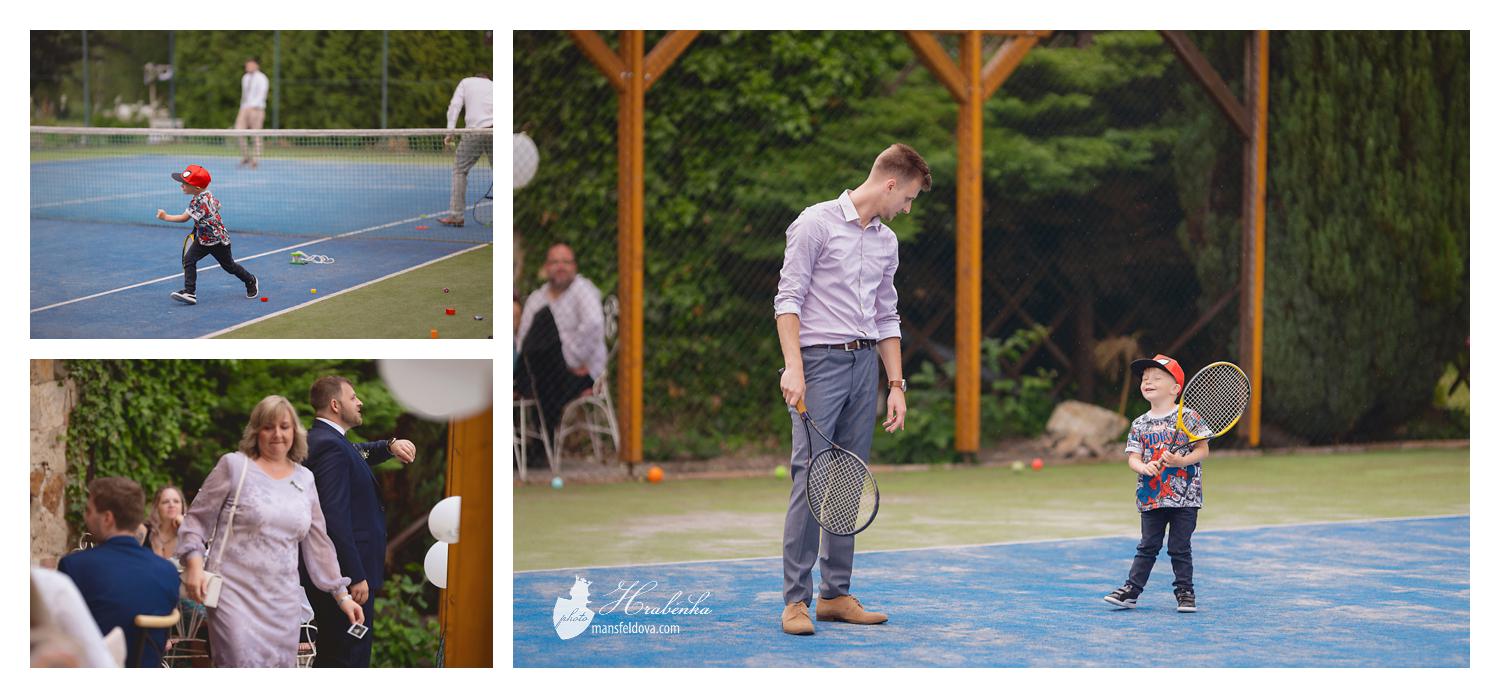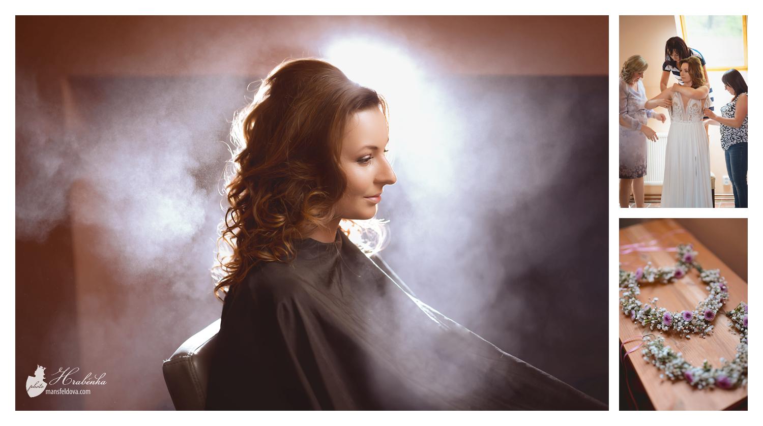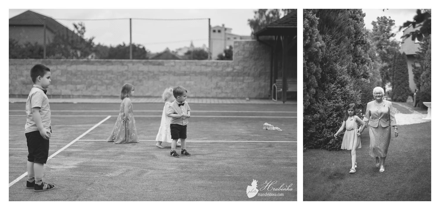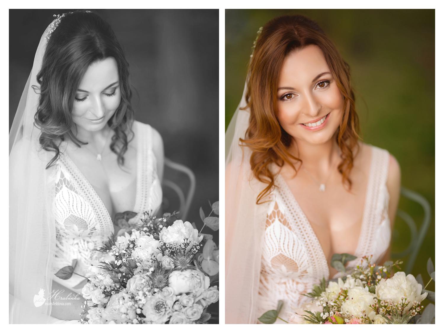 Svatba se konala v tenisovém klubu v Kněževsi, krásně vše na jednom místě, hezky pohodově, kytkami vyzdobeno od Kytkyzestatku.cz . Čekal nás pořádně horký den, což jsme pocítili už z rána a i v krásné zelené zahradě bylo parno. Ale i tak bylo venku lépe a proto Veronika Bečková líčila venku na vzduchu.