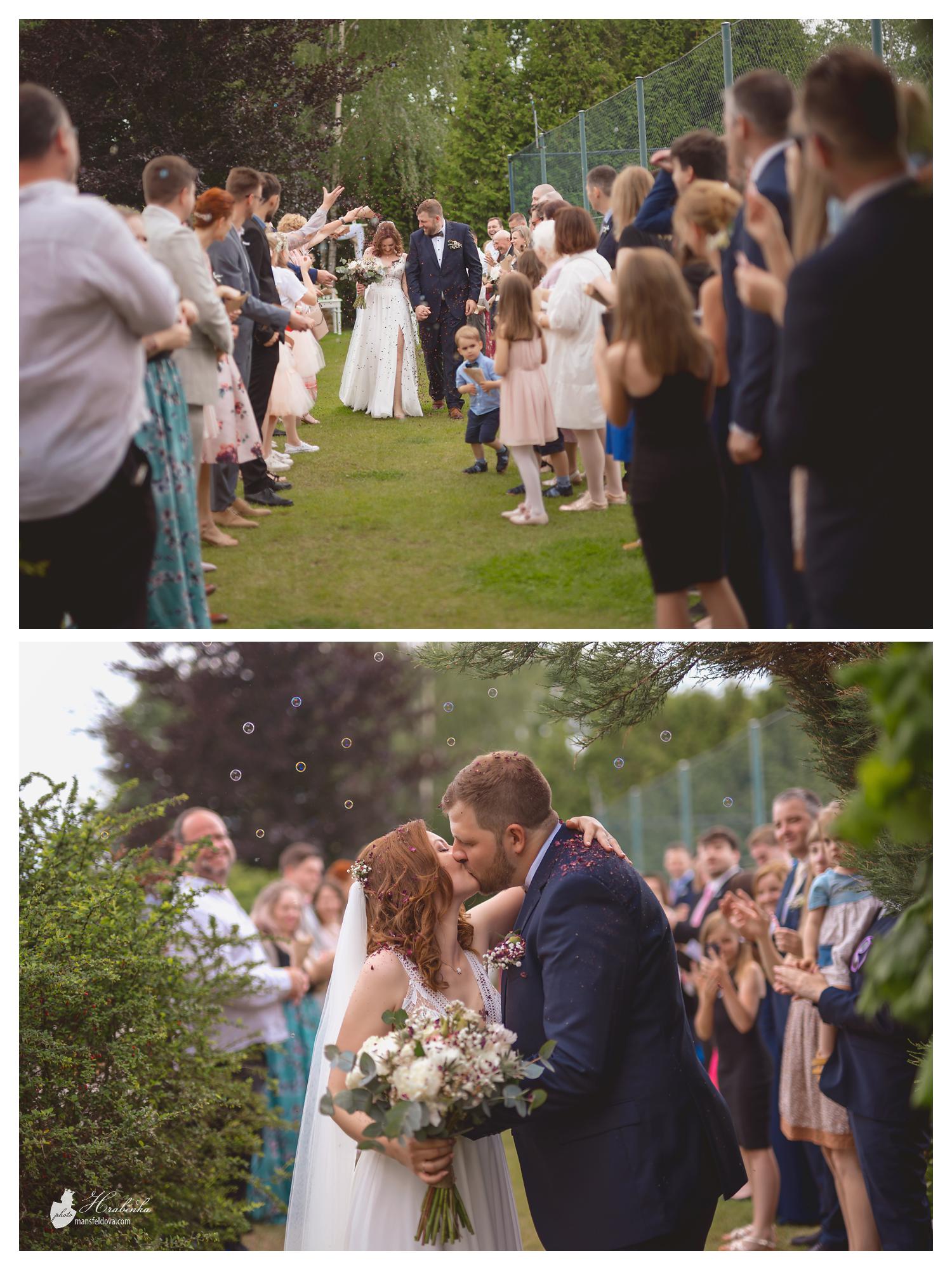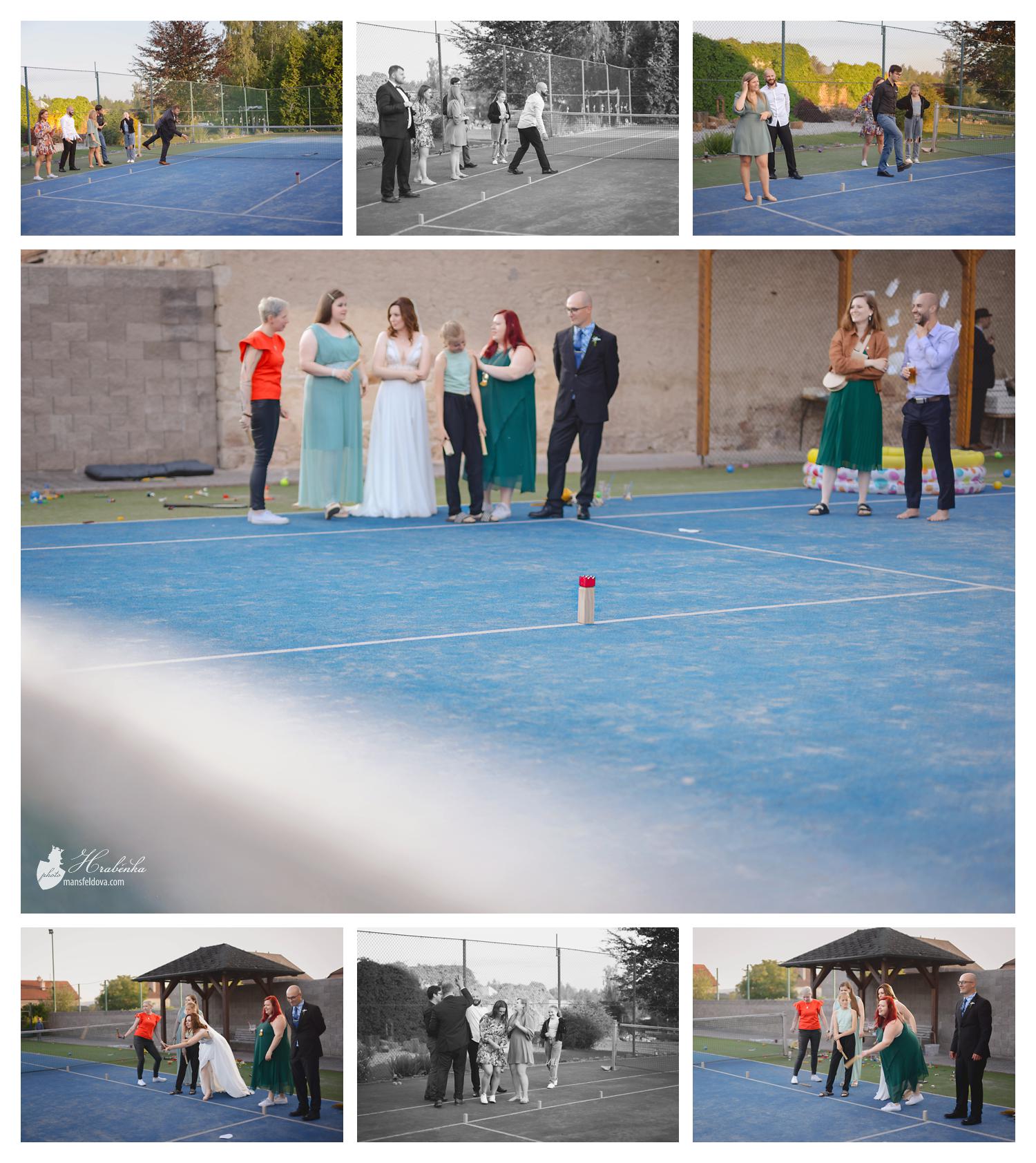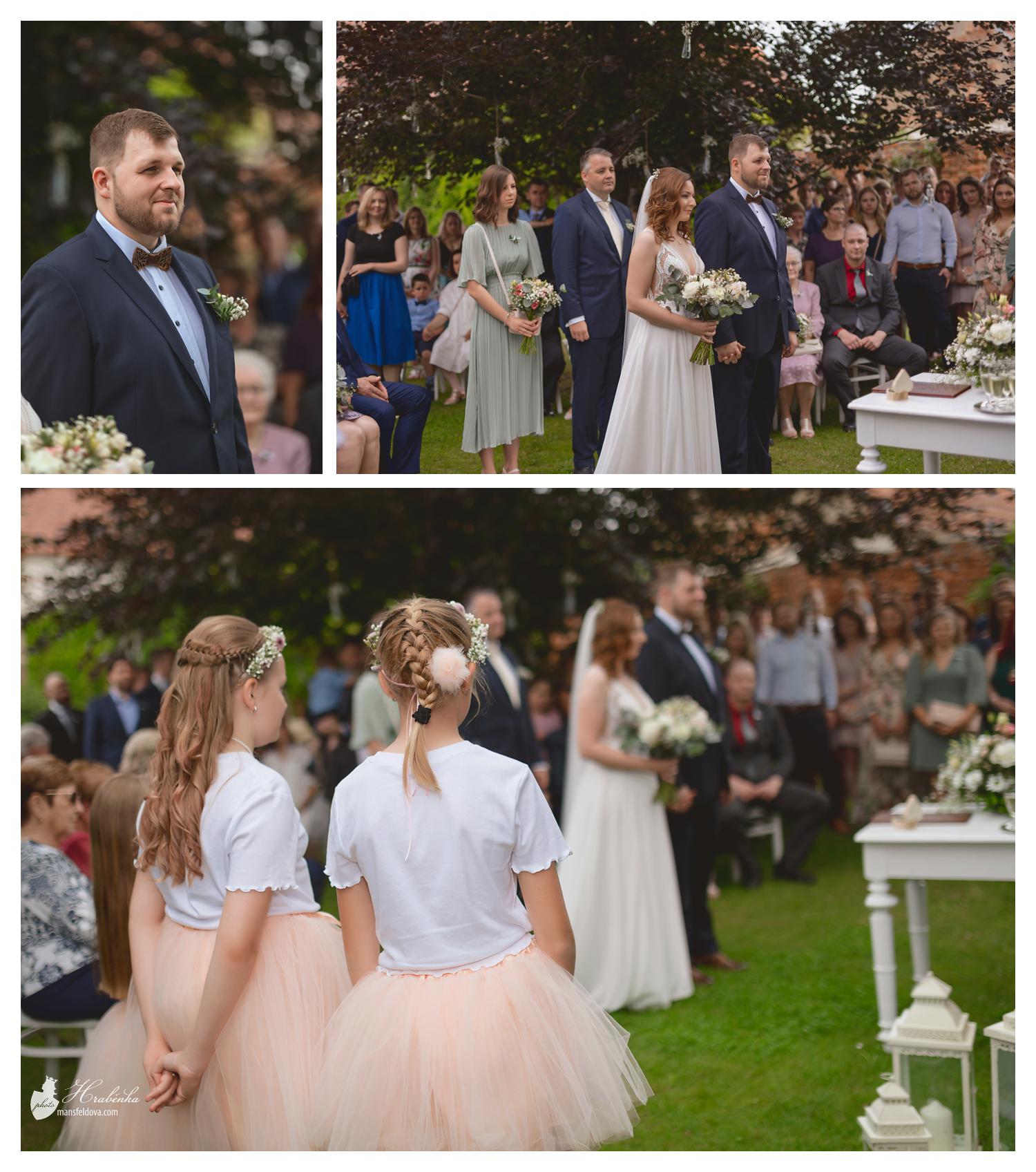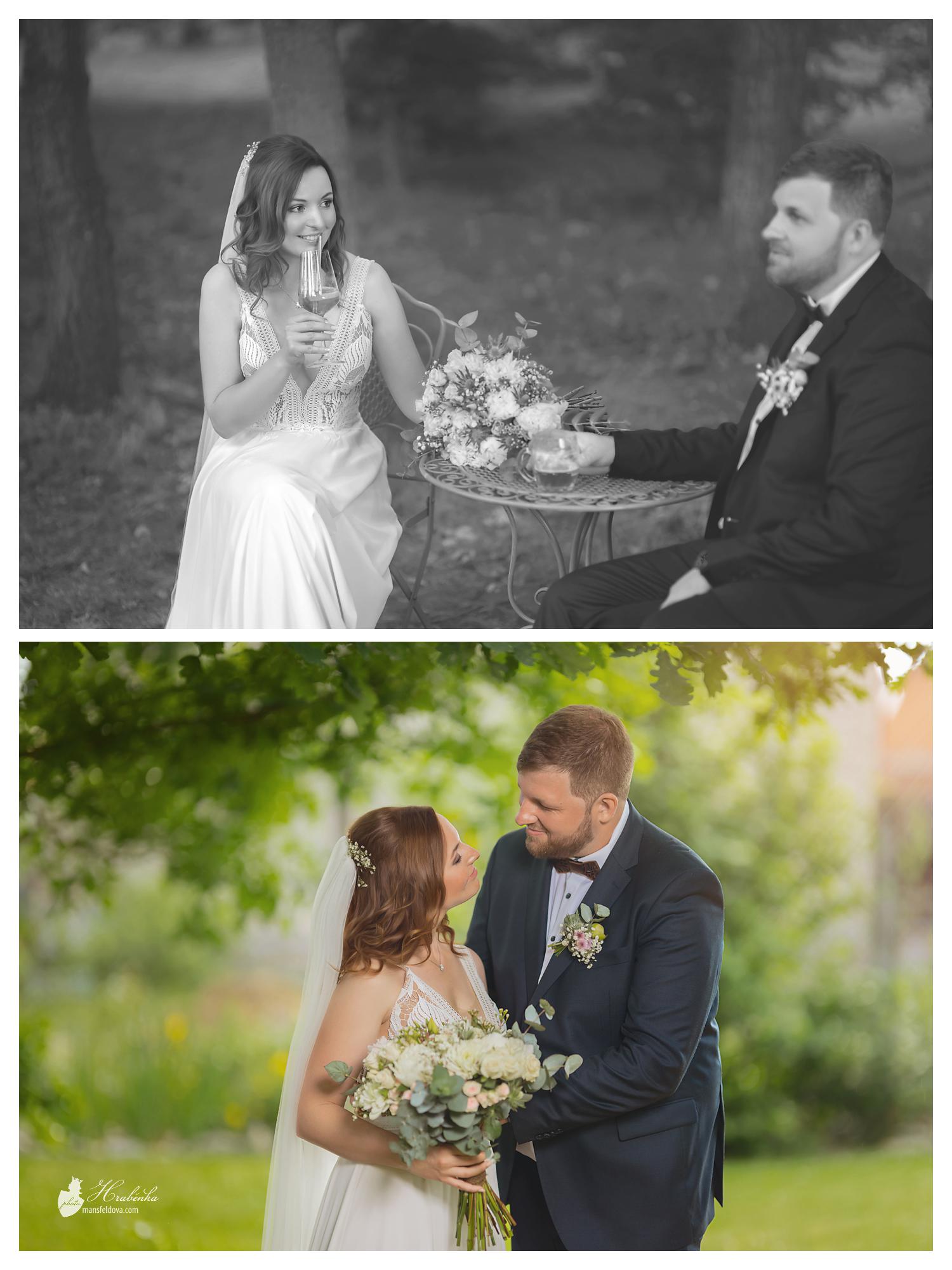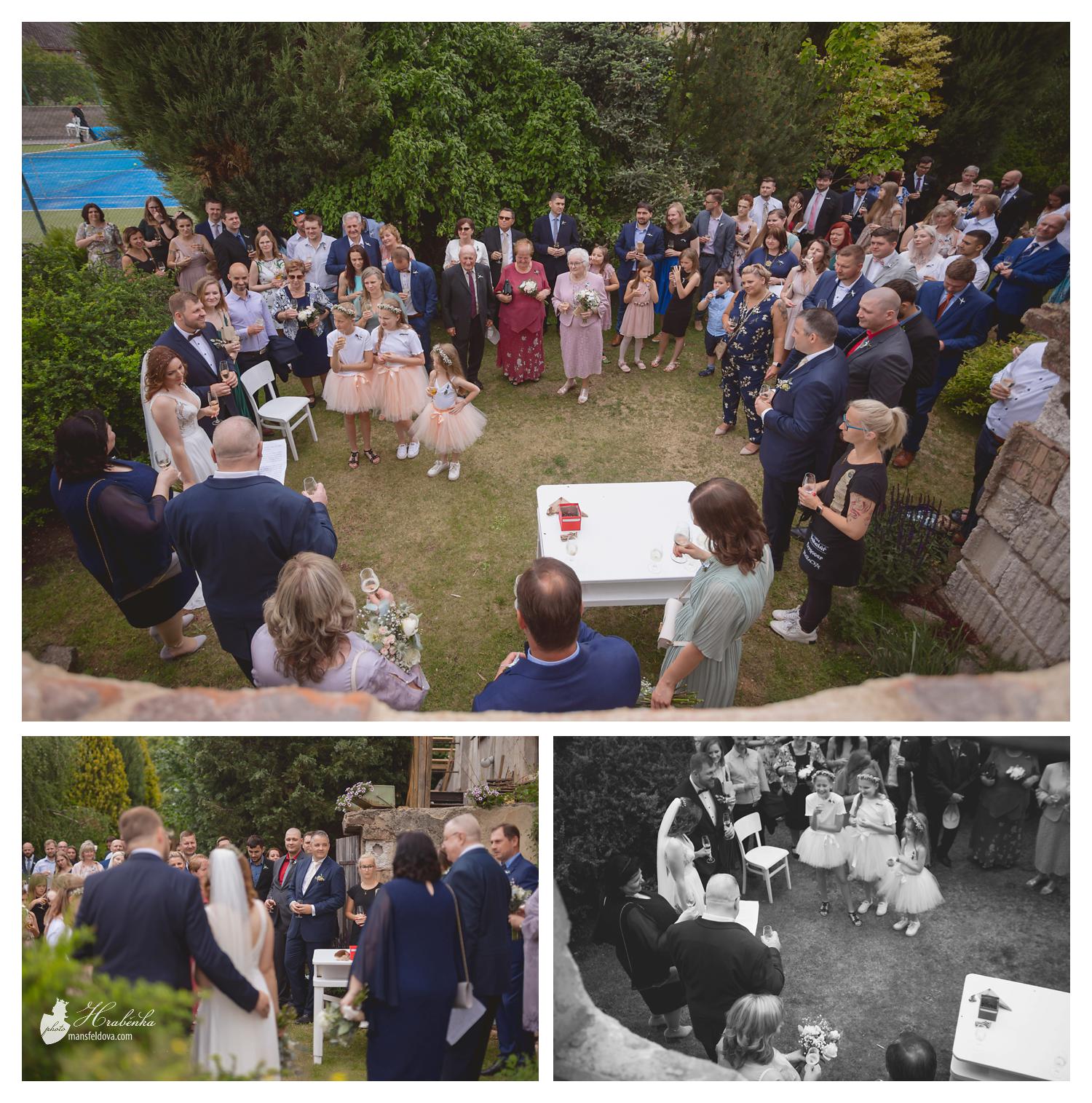 Svatba se konala v tenisovém klubu v Kněževsi, krásně vše na jednom místě, hezky pohodově, kytkami vyzdobeno od Kytkyzestatku.cz . Čekal nás pořádně horký den, což jsme pocítili už z rána a i v krásné zelené zahradě bylo parno. Ale i tak bylo venku lépe a proto Veronika Bečková líčila venku na vzduchu.